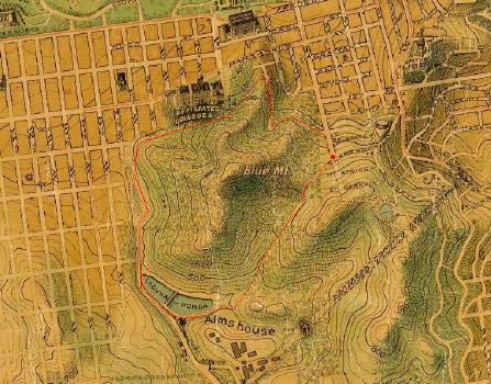 On a Sunday afternoon in July 2011, I set out to retrace the steps that the author took on that day in the Fall of 1896. I began at his starting point (at what is now the intersection of Stanyan and Belgrave Streets), but I found the path blocked by houses. Slightly annoyed, but not dissuaded, I walked around— over Tank Hill and up Clarendon to where Stanyan once came come through. From this location, with a copy of the article in-hand, I began my walk back in time along the section of Clarendon that was once known as the “Almshouse Road.”