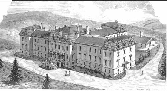 “The prettiest portion of the whole road is just beyond the Almshouse gate. It might properly be named the Eucalyptus road, for both sides of the driveway are lined with the most picturesque specimens of those artistic trees. The trees are just in their prime and make a most refreshing shade, that is pleasant to look at in cool weather and cooling when the sun is hot. This avenue is about 500 feet long, and in some places the branches of the trees meet overhead, forming a natural archway, the equal of any in the State. When the sun is low in the west and the trunks of the trees cast long shadows over the roadway, then is it indeed a beautiful sight. The spots of light dance as if endowed with life, and the whole interior of the archway is filled with a soft glow that mingles with the quivering sunshine.