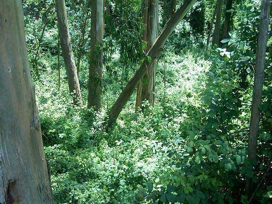 Around the bend and over the treeless portion of the hill (left) is the area not far from where the author began his walk.