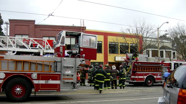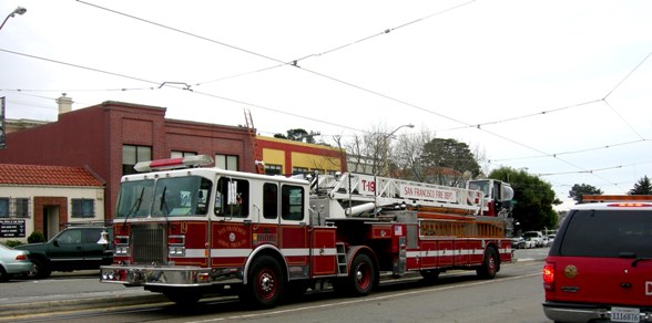 We were in West Portal on Feb 25th afternoon, when the sirens started sounding, from all around us. They were converging on the last block of the shopping village, where, incidentally, we had parked. Several fire-trucks were arriving, and someone with a gurney, and all manner of emergency vehicles. It was an impressive response.