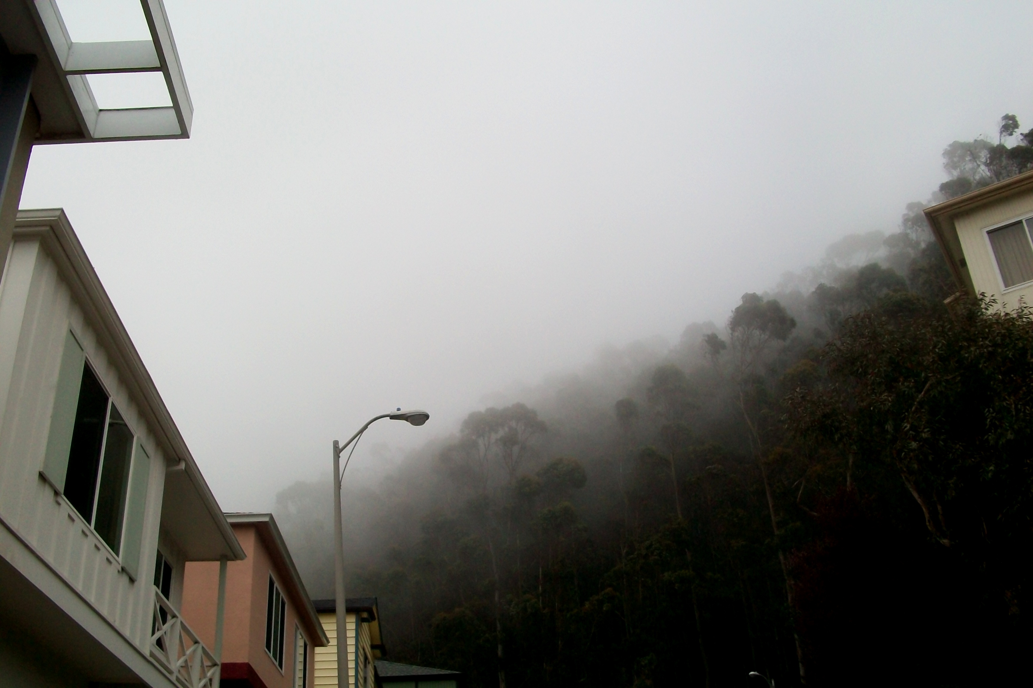 The fog has been rolling in this week in great white sheets, rolling over the hills. My neighborhood has such a tangible relationship with fog. We embrace each other, work into the depths of each other. Fog swirls around our streets and wisps through the corner of our chain link fences. Sunlight fights the buildings to reclaim its hill top territory, and the fog races through the terraces, desperate to flee. Forest Knolls, Crestmont Street, Diamond Heights, Golden Gate Heights, we are the first thing the fog truly touches when it rolls in from the ocean. We provide the surfaces and the touch for mist to coalesce, dropping off the moisture gathered a thousand miles away. We are the islands where blue butterflies still roam, the sanctuaries for coyotes and the smell of eucalyptus dust, foxes and jasmine. And we are also the final resting place of San Franciscan latitude fog.