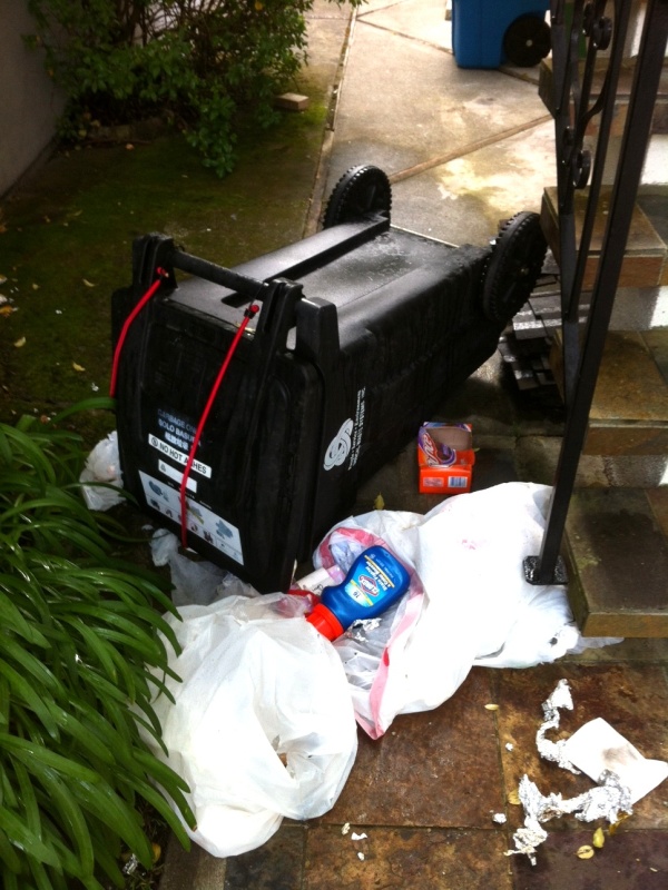 Maybe the black bin had overflowed and some of the garbage was left on the side in vulnerable garbage bags?