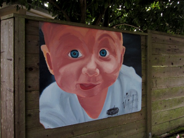 It’s a rather dramatic painting, with something deleted and the artist’s signature: Richard Vejmola, dated 1/8/14. Wonder who the baby is?