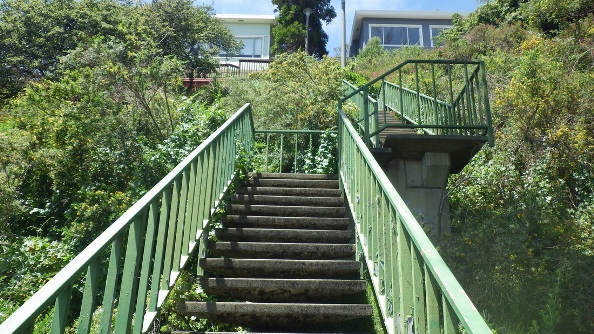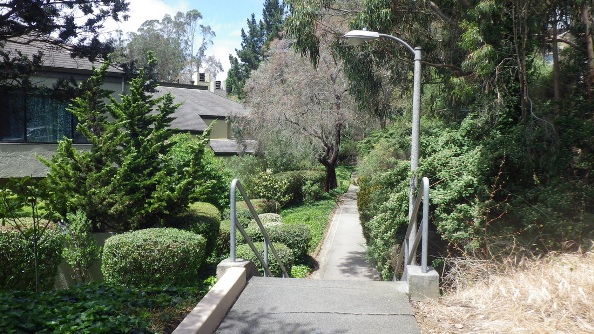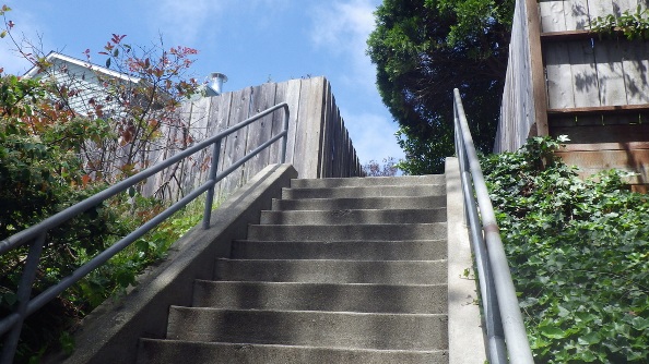 San Francisco’s Mount Sutro has several stairways with over 100 steps. The Medical Center Way stairs that ascend from behind the hospital buildings on Parnassus total about 136. Farnsworth Lane: 149. Around on the south, east, and west sides, the Forest Knolls neighborhood has Ashwood (109 steps), Blairwood (337), Glenhaven (167), and the longest, Oakhurst Lane (353-ish).