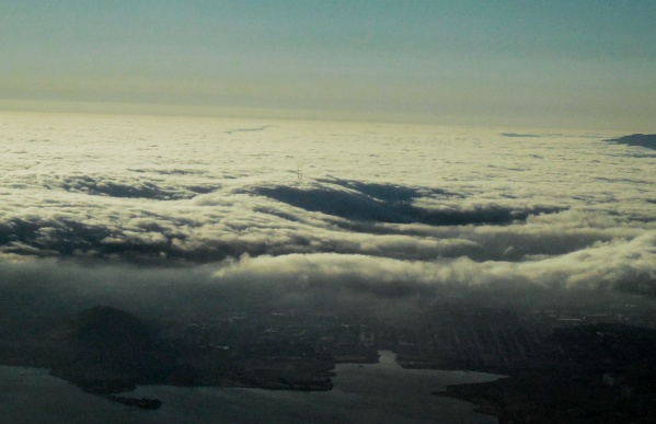 Recently, I made a trip to Seattle. As the plane took off over San Francisco, a layer of fog covered the city, and I got these cool pictures through the window.