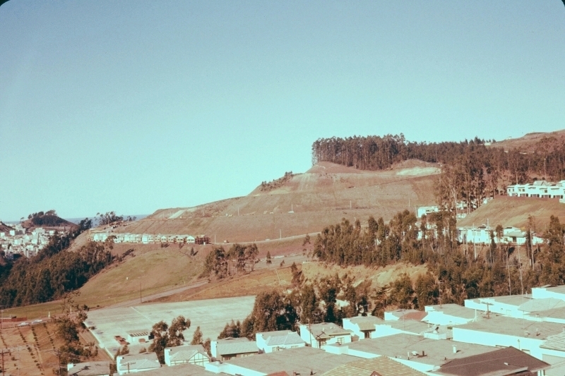 A few residents of Forest Knolls may still remember what it looked like back in 1961 after the hillside was scraped bare and graded and covered with homes, some still under construction. When I happened upon this picture (taken by Earl Martin) on the Western Neighborhoods Project website, I immediately asked them for permission to reproduce it here. Woody La Bounty was kind enough to agree. It was taken at the dedication of the Midtown Terrace Playground, around 1961.