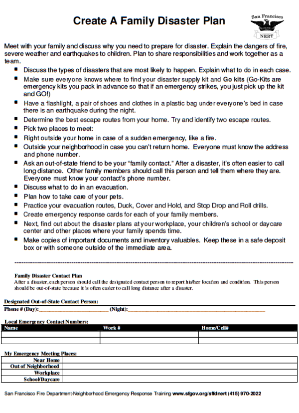 The San Francisco Neighborhood Emergency Response Team (NERT) is free training from the San Francisco Fire Department in how to help yourself and your neighbors prepare for and respond to a disaster by working together. The 20-hour training taught by First Responders includes personal preparedness, light search and rescue, disaster medicine, shutting off your utilities, and how to participate as a member of a neighborhood response team. NERT also offers continuing training for graduates and activities that support building robust neighborhood teams. For more information, visit the NERT website or contact Lt. Erica Arteseros at (415)970-2022 or sffdnert@sfgov.org.