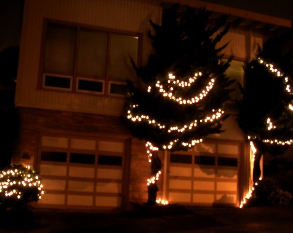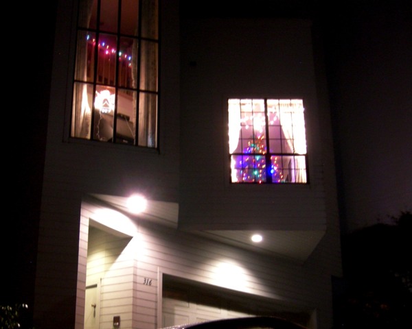This year’s no exception. Everywhere I go, windows are full of brilliant trees. The city’s live tree in Golden Gate Park is already lit. We got round to tree shopping only last night.