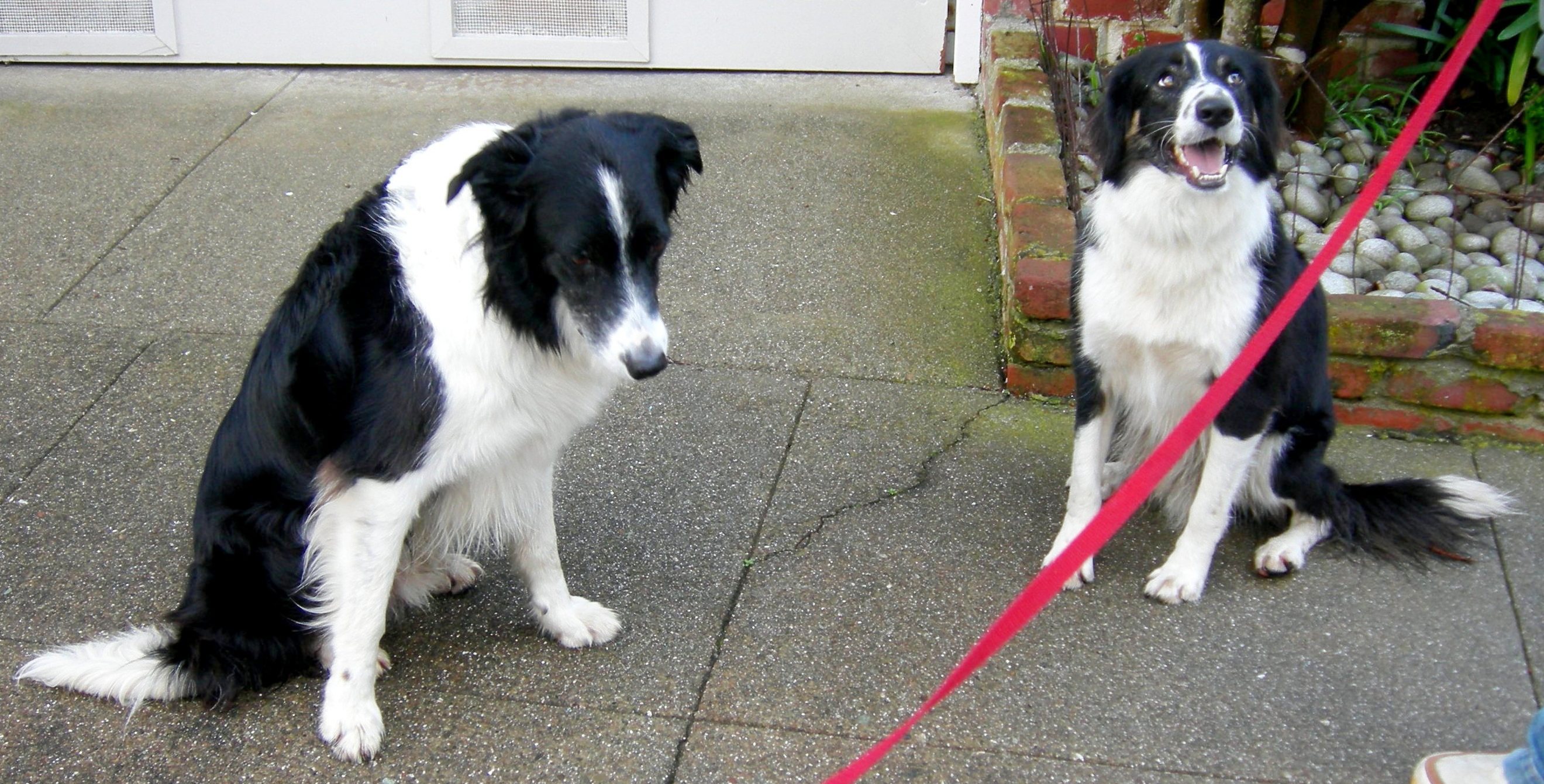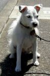 She has a blue collar with a Marin County dog license and an oversized leather teardrop tag.
