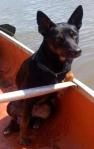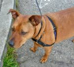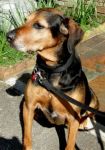 Nina is a 7 year old small/medium sized black dog with brown stockings and salt & pepper toes on her hind legs. She has two brown spots above her eyes and a white spot on her chest. There is some graying around her snout. We’re working on getting her photo posted here as well.