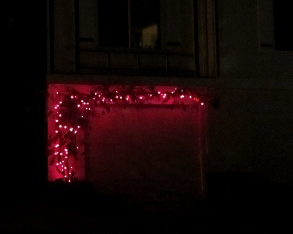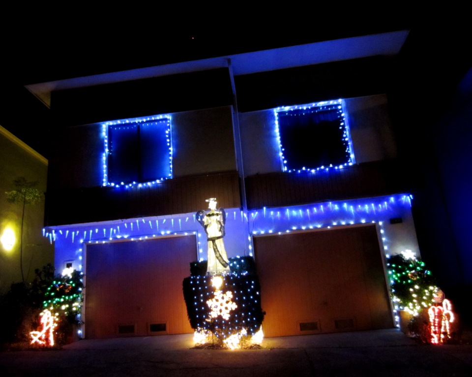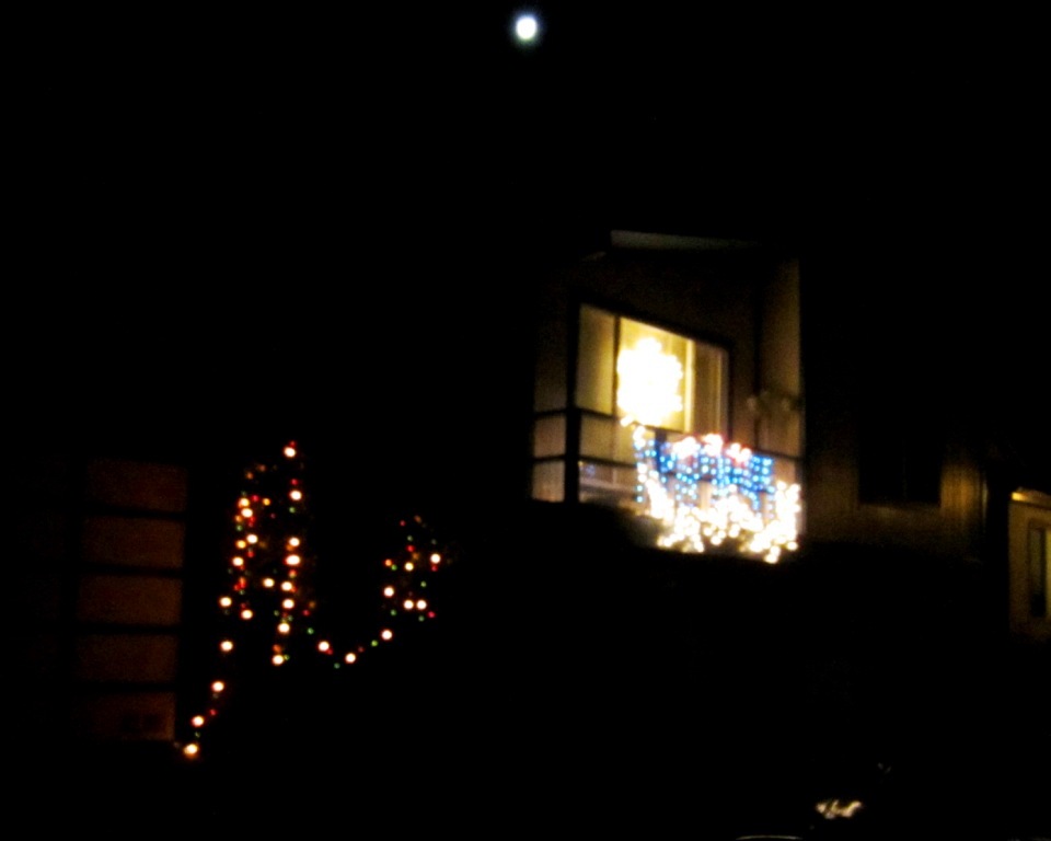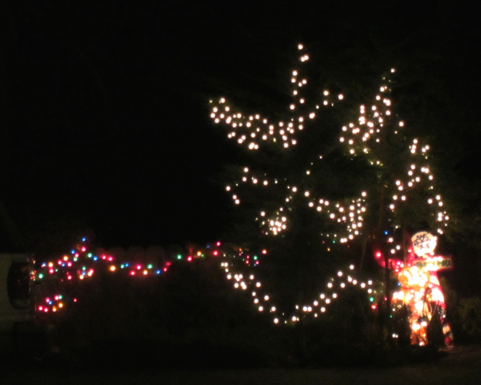 The wonderful decorations in Midtown Terrace are up again. Greenview is a cul-de-sac where all the residents hang lights on every house each year. Then, at the very end of the road, they put up a display made of painted plyboard cut-outs and lights. They have a menorah that is lit, one painted candle at a time; a dreidl, a creche, and Santa Claus, reindeer and even the North Pole. If you enjoy decorating enthusiasm – I do! – then check it out. It’s a delight.