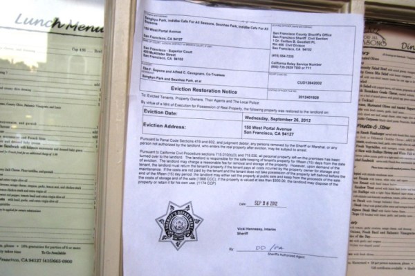 In other, non-fire-related news: Cafe for All Seasons is apparently closed for good. The other day, I was surprised to see it shut mid-week and at lunchtime. Expecting a temporary closure, I jumped out of my car to read the note on their door for the dates. Instead, it was an eviction notice. Pity, that. First West Portal Bakery, gone equally suddenly, now this. I hope whoever moves in will be as popular as Goat Hill Pizza, which took West Portal Bakery’s spot.