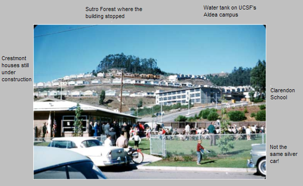 But it would be wrong to say that absolutely nothing remains of the place described in the article. The rural roots of this part of the City still linger. Eucalyptus-covered Mount Sutro is still a forested wilderness and much of the landscape around Laguna Honda Reservoir remains undeveloped. Even within the quiet residential neighborhoods of Midtown Terrace and Forest Knolls, bisected by Clarendon Avenue, it still holds true that “…it is hard to realize that only a few hundred feet to the northeast there is a big City throbbing and pulsating with life. There is no suggestion of it here…“