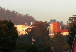 Laguna Honda Hospital (LHH), at the foot of Clarendon Avenue, is in a sense part of our neighborhood. The Woods, a community of townhomes, lies just across from it, as does Galewood Court. Thanks to the addition of some unlovely tower blocks, and the felling of a lot of trees (eucalyptus – of course), it’s a lot more visible than it used to be. Especially at night, when it bears some resemblance to a large parking garage.