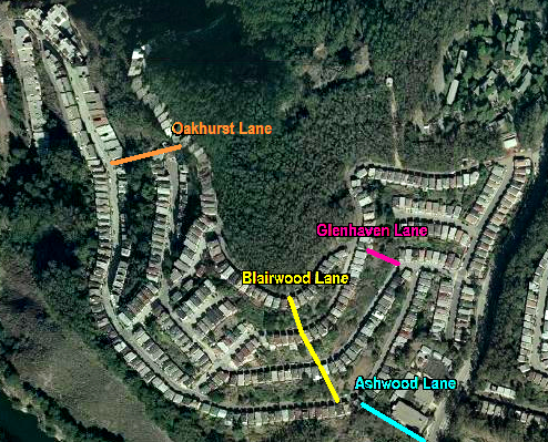 What surprised me was that they all have names. They’re lanes:  Ashwood Lane; Blairwood Lane; Glenhaven Lane; and Oakhurst Lane.