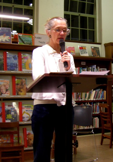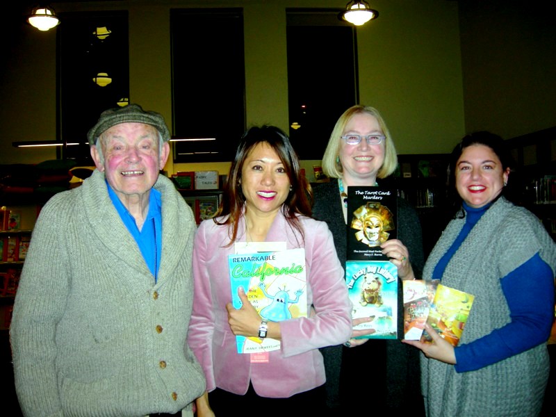 The final author for the evening was Mary F. Burns, who headed the West Portal Neighborhood Association and authored “The Woman Who Wrote the Bible” about Janaia, a daughter of King David. But what she spoke of was her two earlier books, “cozy” mysteries actually set in West Portal (and subtitled A West Portal Mystery). The first, inspired by her friend’s bulldogs, is called the The Lucky Dog Lottery. The second is The Tarot Card Murders. Featuring such familiar places as St Francis Market and the Village Grill, they’re self-published and available from Ex Libris. And from our local West Portal library.